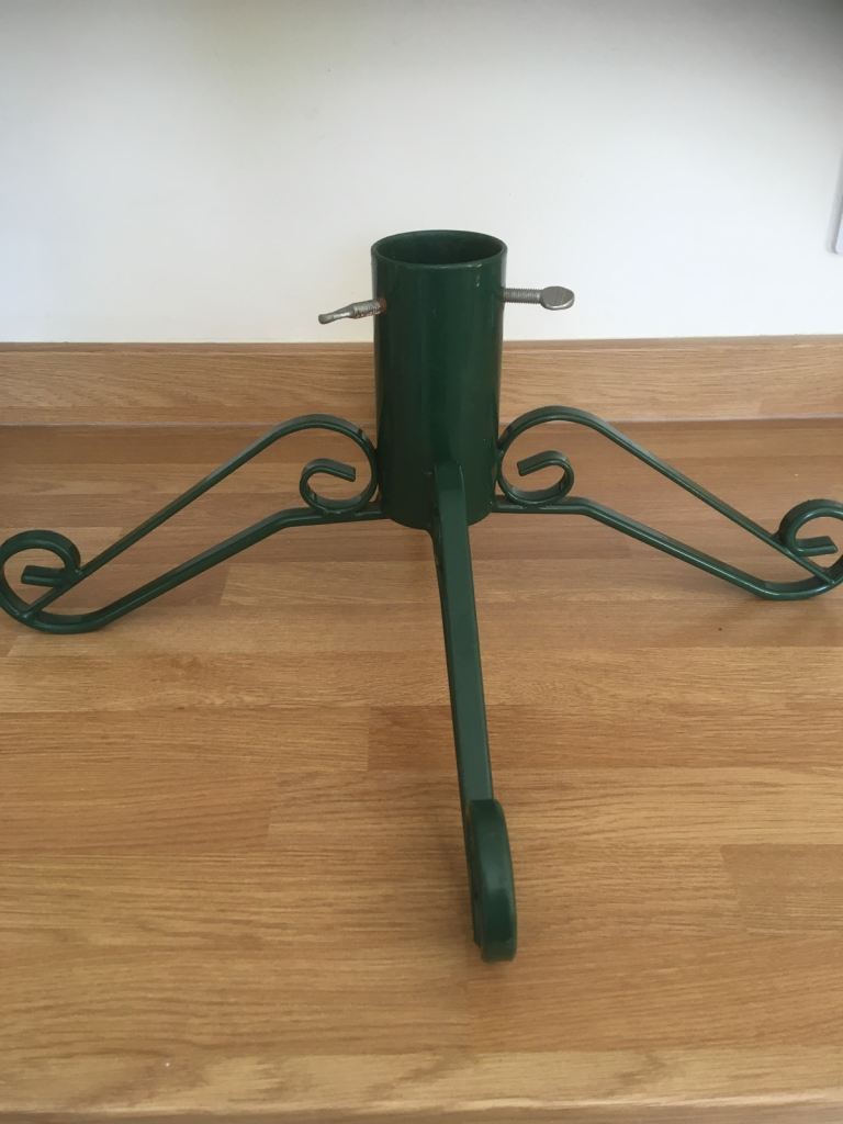 Traditional Scroll Leg Metal Tree Stand for fresh cut real trees. Green Strong, heavy duty metal, with holding pot to keep tree fresh for longer. Ergonomically designed thumb screws hold the tree securely in position Dimensions : 56x56 cm H