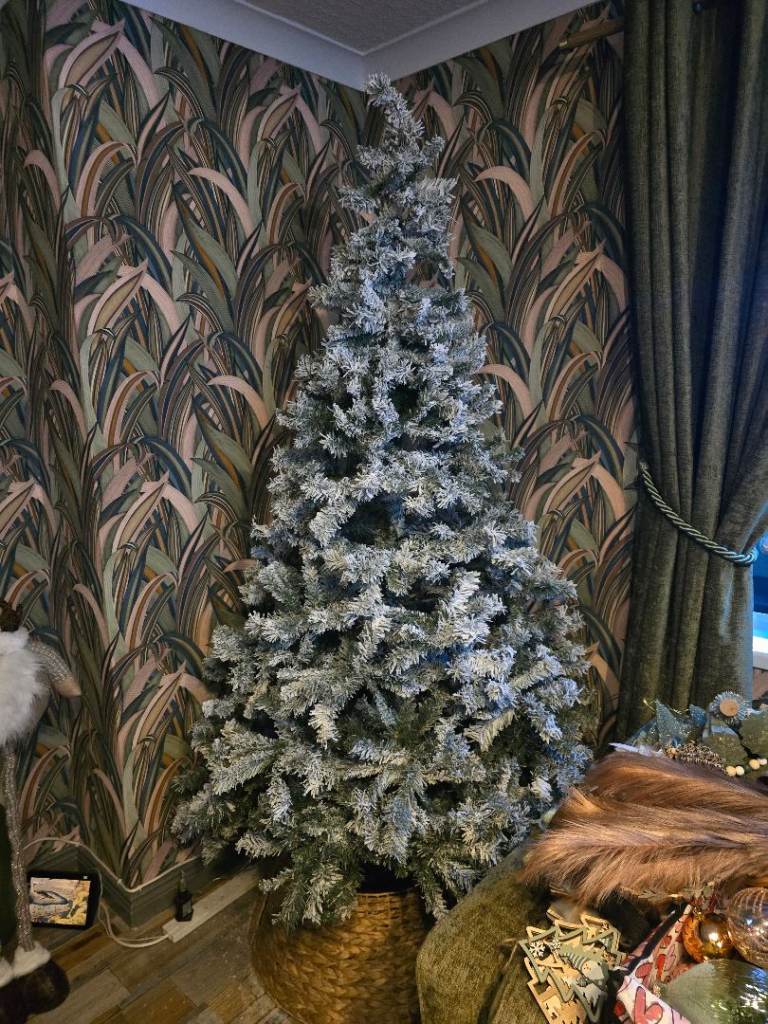 Brand new 7ft snow flocked tree was only took out of box put up took down again as didn't no its was dangerous to pets If ads still up its available