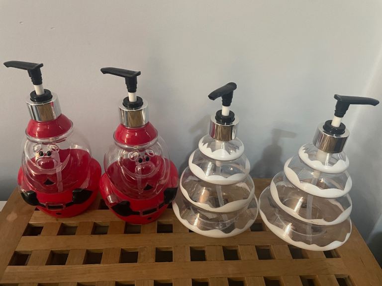 x4 Christmas hand wash dispensers. x2 Christmas trees. x2 Santa’s. Used. Good condition. Originally £5.99 each from squires. Free to a good home! Collection from Walton-On-Thames, Surrey.