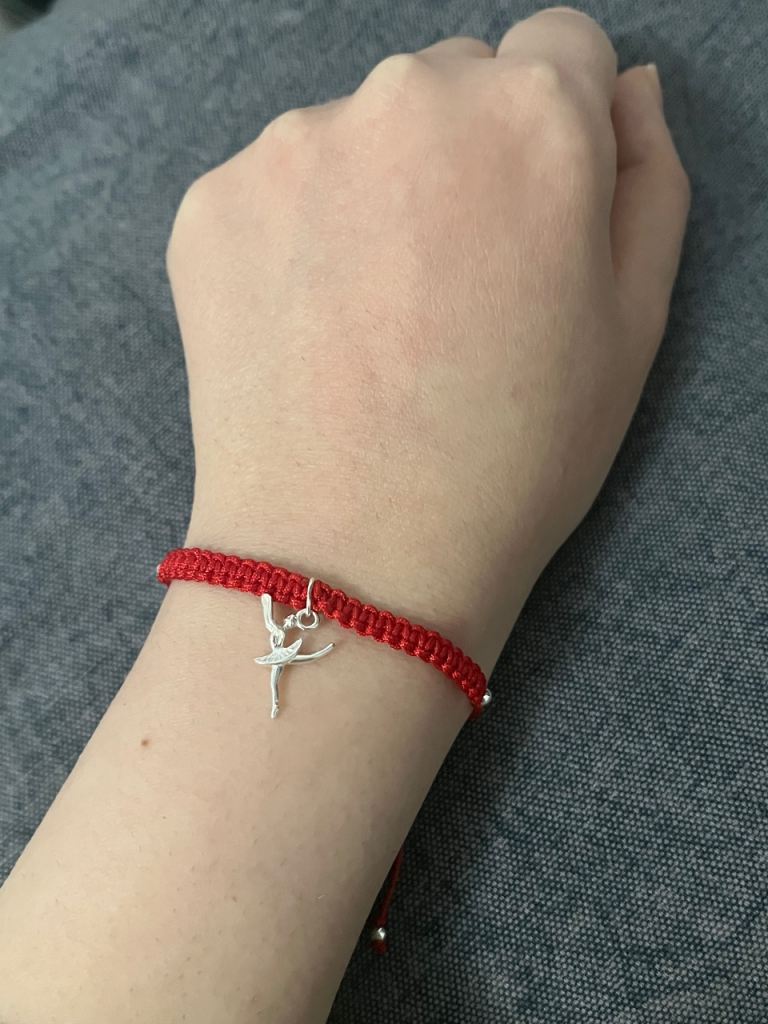 Sterling Silver Ballerina Charm Thread Red Handmade Bracelet Adjustable - Gift For Women & Girls