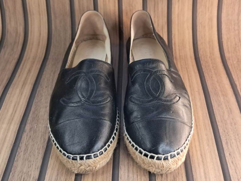 Good condition.Authentic Chanel Black Leather Flats size UK-6. EU -39. Preowned Used maybe 3-times it was to small. (No box) As seen. Collection Edinburgh or I can post it for extra money. Thanks