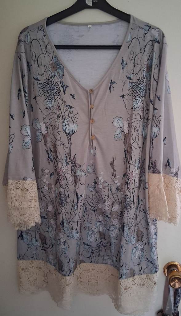Only tried on never worn top 3xl with lace effect cuffs and bottom, 3/4 button up, measurements in pictures Collection only in letterbreen area. Text or message only please