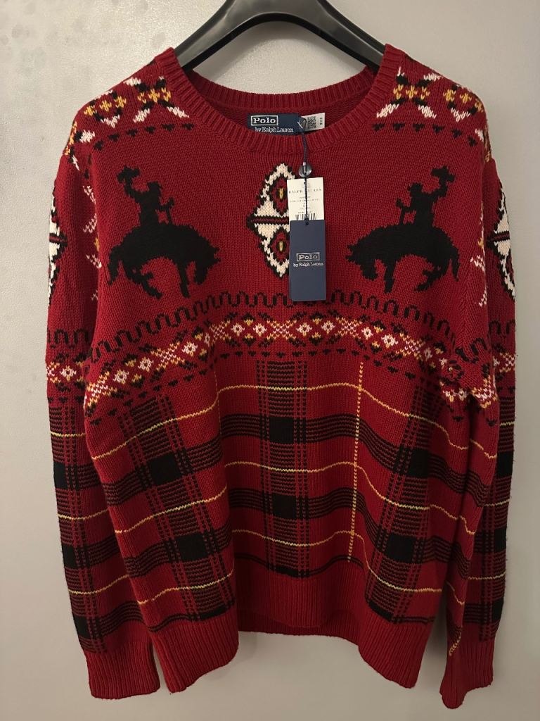 Polo Ralph Lauren Western Fair Isle Wool Jumper Pullover Red Combo Size L RRP £450 Brand New Material: Wool Fast Delivery - Same Day Dispatch Collection from Greenwich SE7 or I can post for £10 Extra