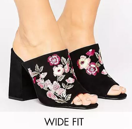 Wide Fit Embroidered Heeled Mule