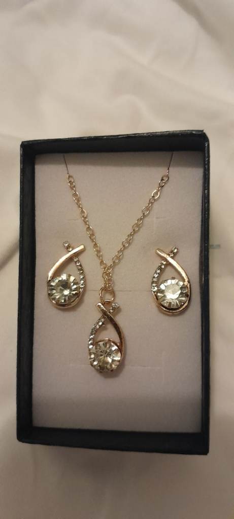 Gold tone diamonte necklace and earrings set new in gift box pick up only from g73 area
