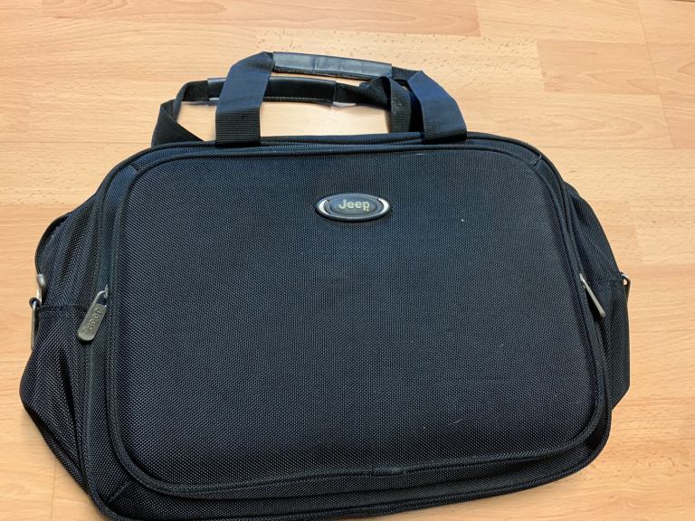 This is a nice genda neutral black laptop holder or a nice bad to carry around either your essentials in, jeep brand and many pockets inside