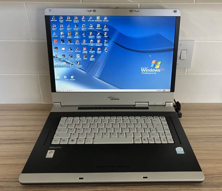 For sale is my retro gaming laptop running Windows XP with lots of classic games. It is in nice used condition, full working order and has WiFi connectivity. This is an ideal machine for playing all those older games and for any software which no