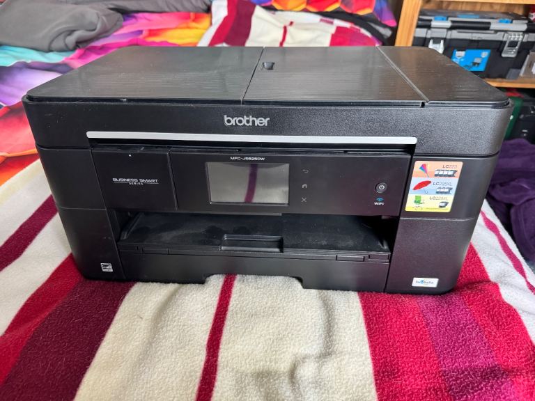Good condition Brother MFC-J5625DW printer, ready for a new home. It's an all-in-one model, meaning it prints, scans, and copies. (And is also a fax) Prints A4 and A3. Comes with a bunch of extra ink cartridges, LC223 series, 3 black, 1 cyan, and 1