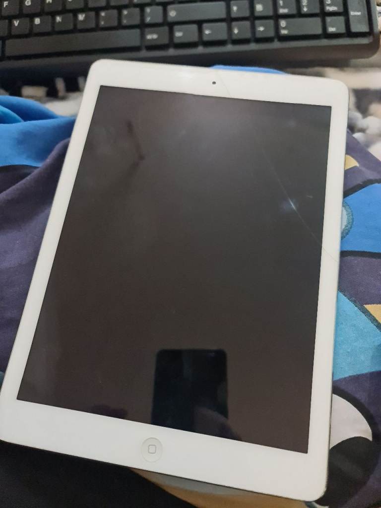 Air model 1st gen 16gb Crack on screen All works Decent battery Running ios 12.8.6 so is outdated but supports some apps still . Good for music YouTube on Internet browser Cameras etc all work