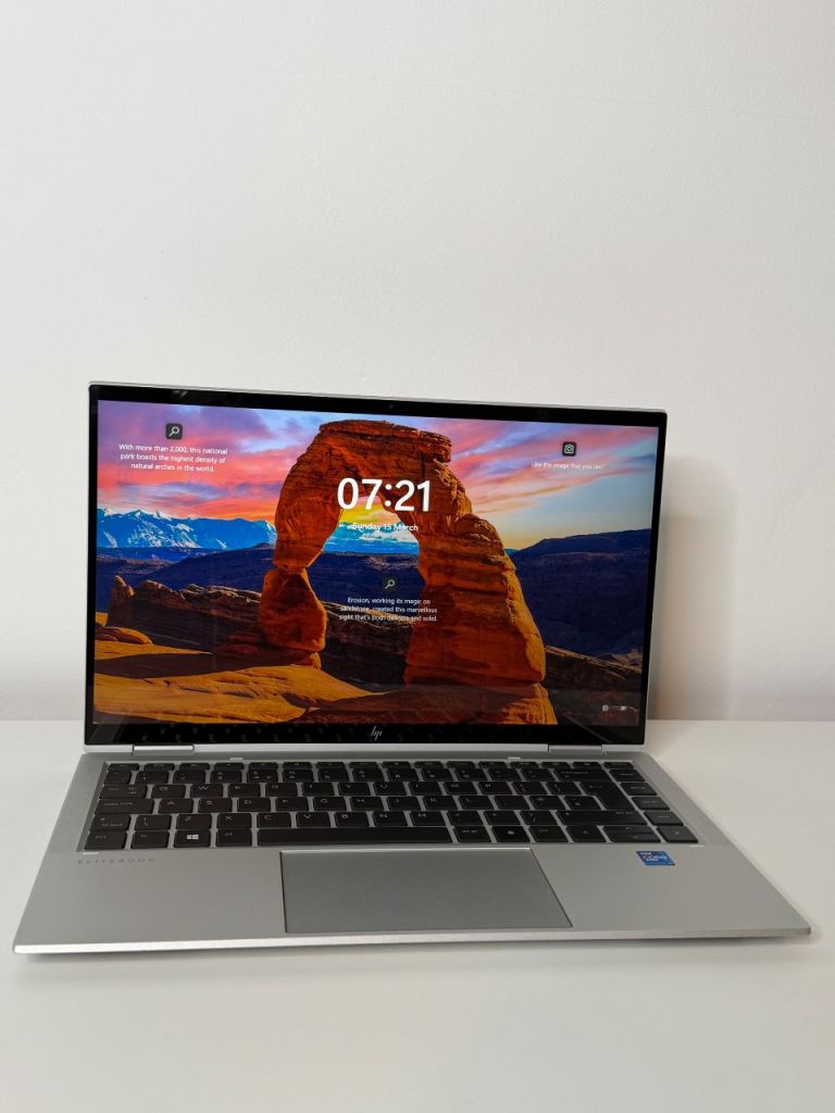 This is a HP EliteBook x360 1040, a premium business laptop known for its solid build quality, speed and portability. It has a 360° hinge, so you can use it as a normal laptop or fold it into tablet mode thanks to the touchscreen. The laptop is ve