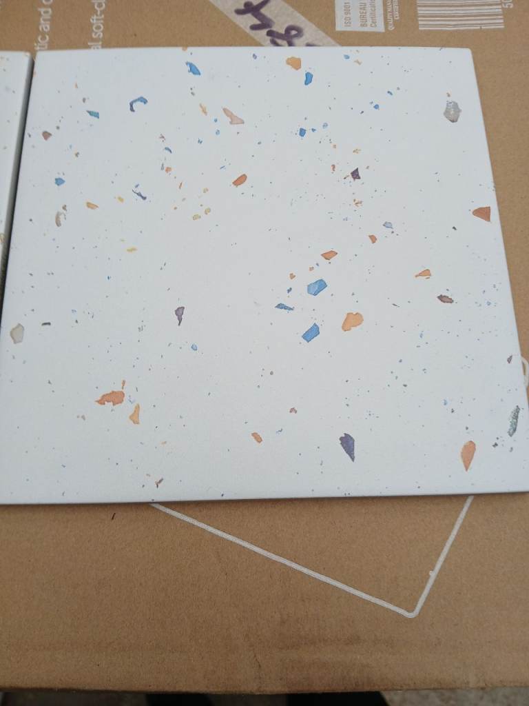Around 100 square white with pattern ceramic tiles, leftover from a bathroom project. They are in good condition, mostly clean with some remnants of old adhesive on the back. Each tile measures approximately 10 x 10cm, ready for your next DIY job. Pe