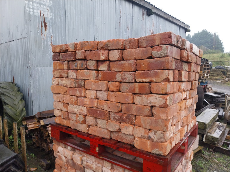 APPROXIMATELY 3-4 THOUSAND RECLAIMED BRICKS REMOVED DURING SITE MODIFICATIONS, THESE BRICKS HAVE BEEN CLEANED TO A BASIC STANDARD AND ARE VERY USABLE. OUT OF THE TOTAL FULL BRICKS STACKED AND CLEANED, WE WOULD SAY 90% ARE IN A VERY USABLE CONDITION