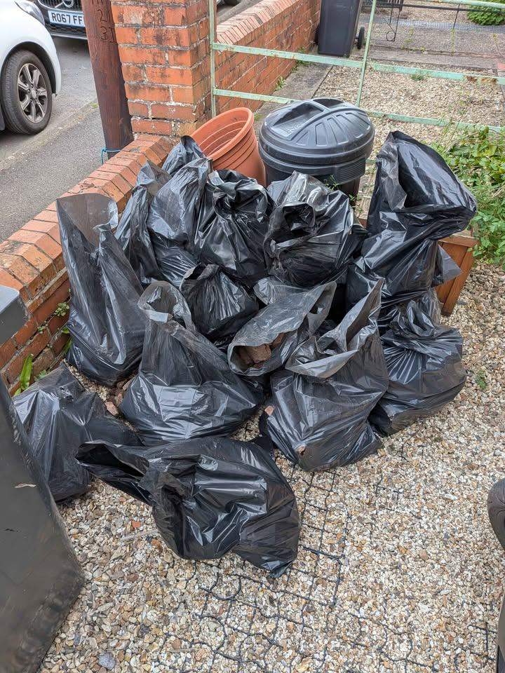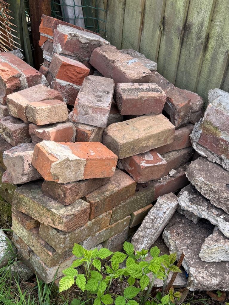 Pile of natural stone pieces, ideal for various garden or building projects. These are reclaimed and show signs of age and previous use. Includes a mix of shapes and thicknesses, ready for collection. Perfect for crazy paving or filling in gaps. All