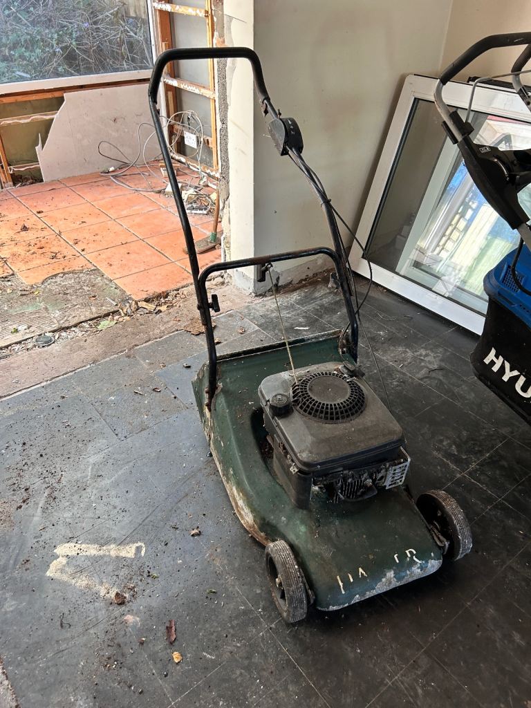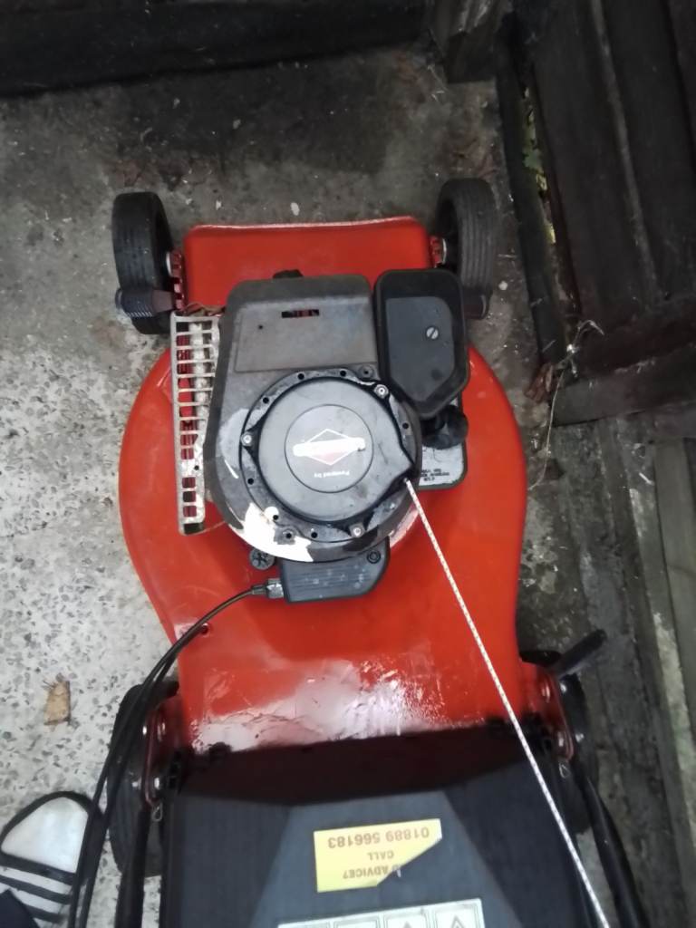Petrol lawn mower self propelled with grass box all in working condition will be shown working it's as hard a plate welded on the right hand side so he's now stronger 60 pound