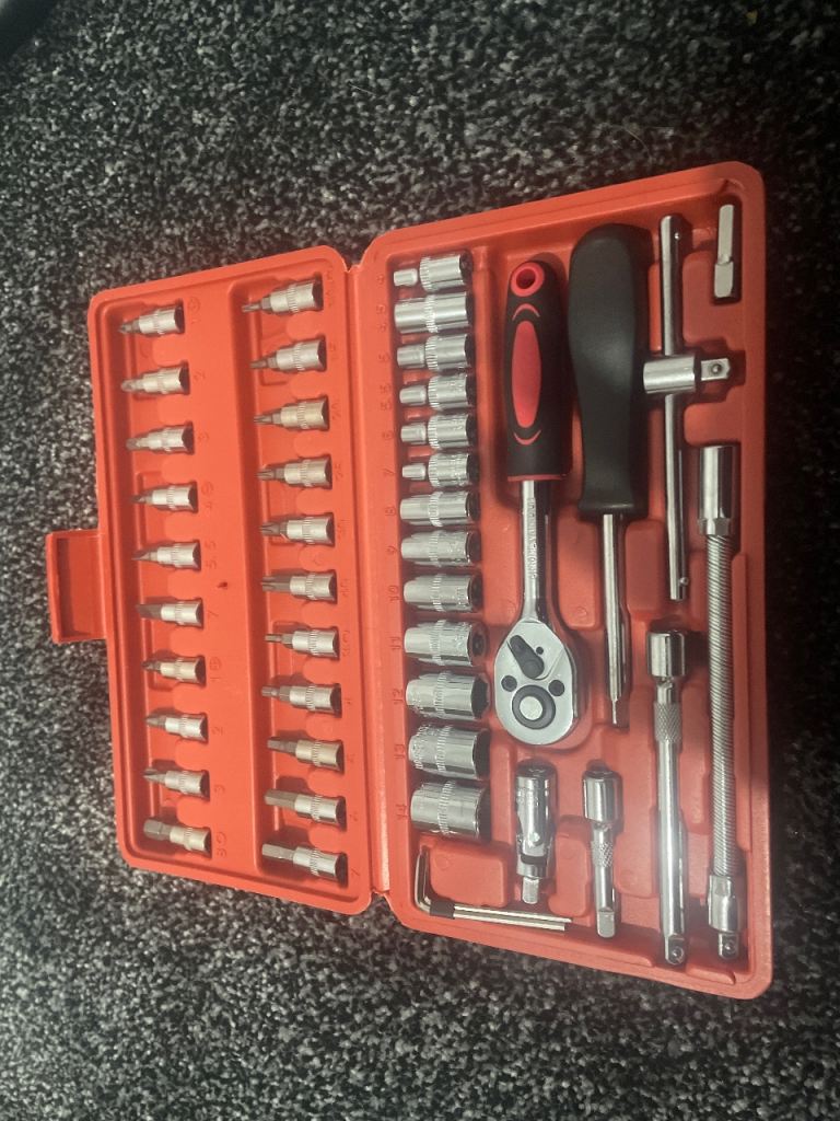 1/2 socket set 8mm to 22mm 3/8 to 5/8 sockets. Spark plug socket. Ratchet extension and speed bar. Brand new unused.