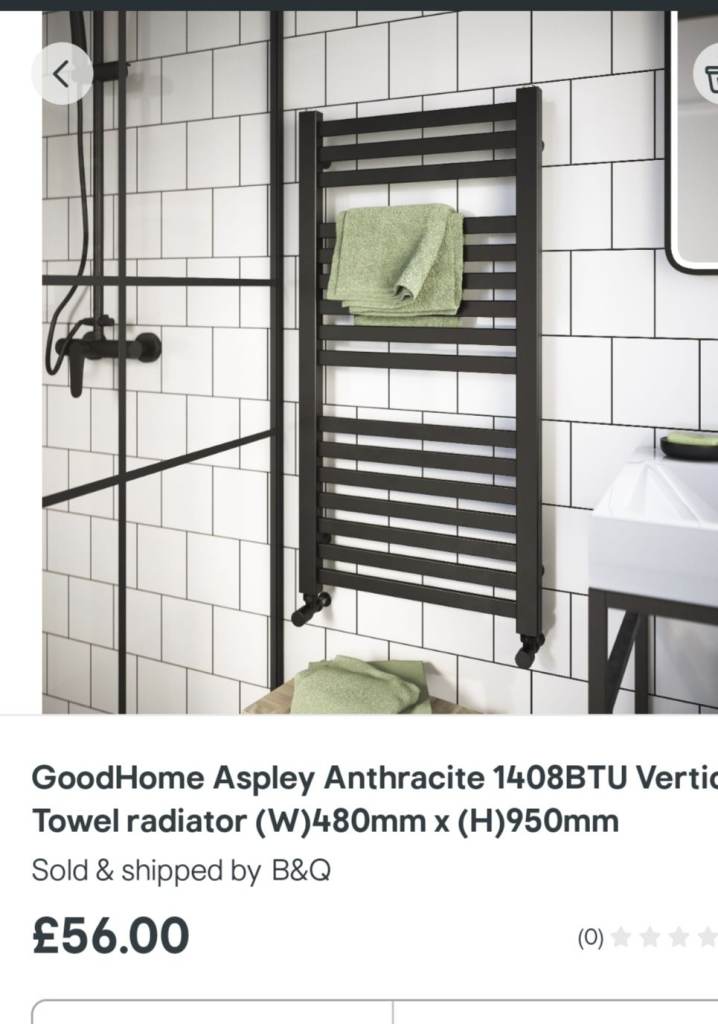 Aspley Anthracite Vertical Towel radiator (W)480mm x (H)950mm Still in packaging, never used. Valves brand new not used