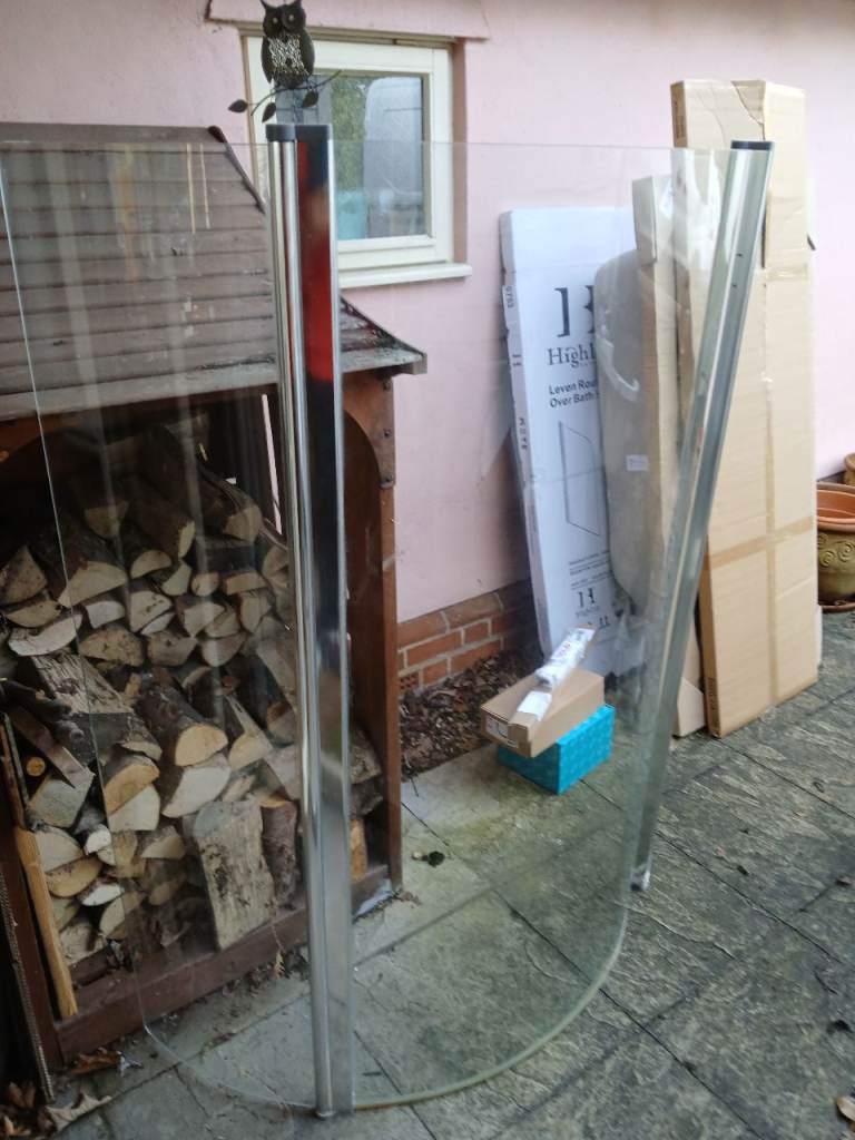 Large folding shower screen.