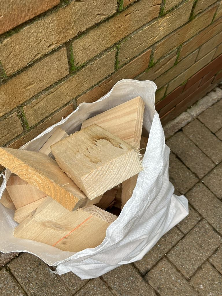 Rubble sacks 900x700, filled with all sizes of kiln dried off cuts of timber , perfect for indoor log burners . £6.00 per bag