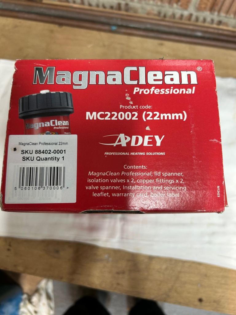 Adey MagnaClean MC22002. We moved house and noticed that the CH system did not have a MagnaClean filter. So knowing how wonderful they are we had a new one fitted. However just a few months later the boiler started playing up and we decided to get a