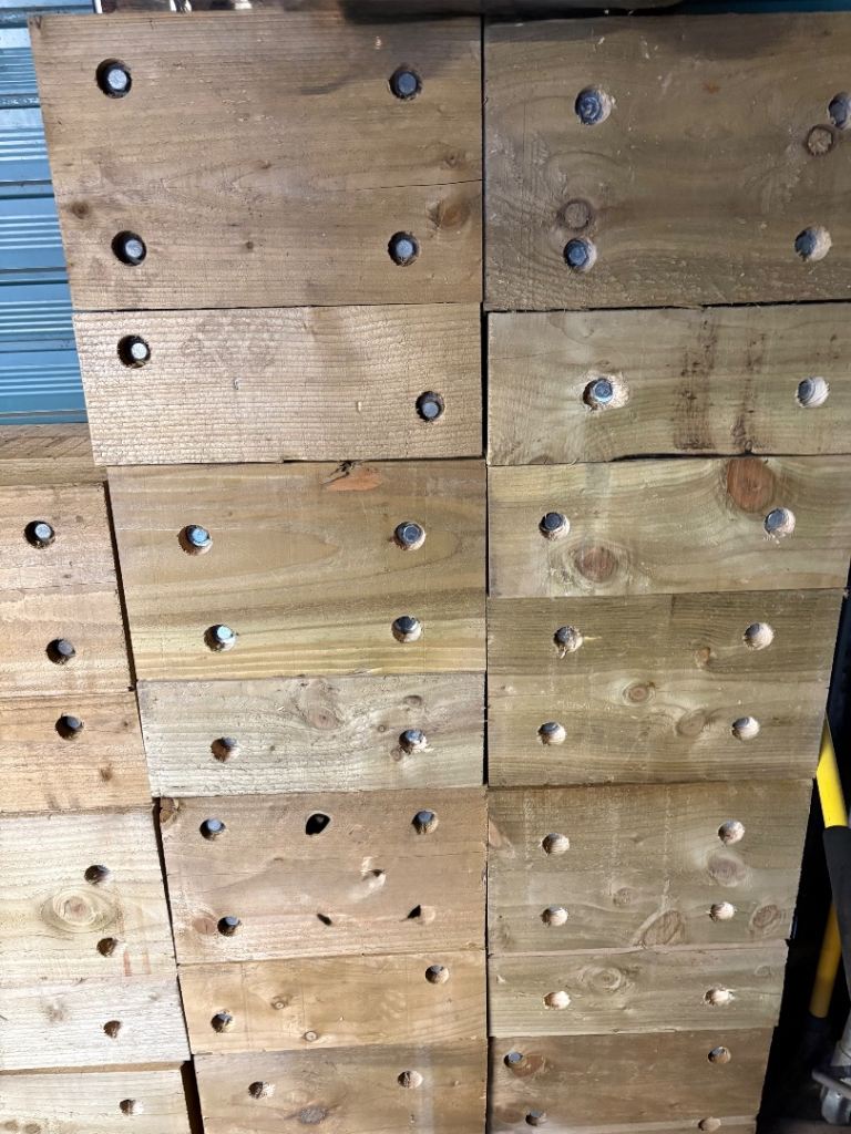 X12 off wooden sleeper blocks bolted together 400mmx400mmx370mm Ideal for splitting and used for lawn edging Reasonable offers