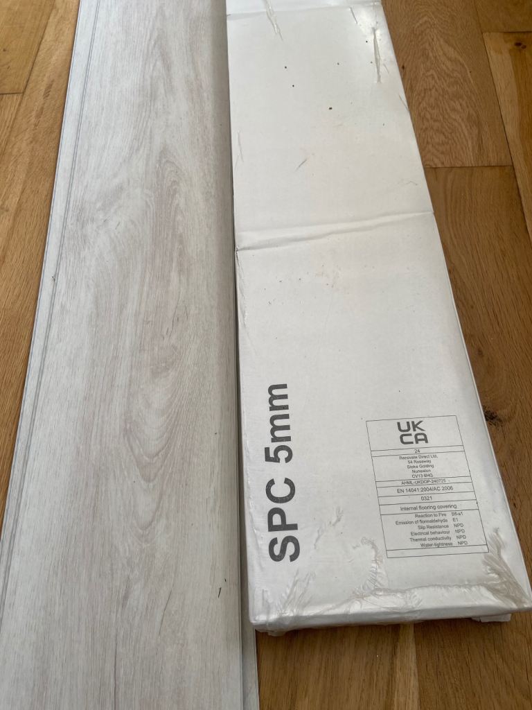 1 x unopened pack + 3 additional boards Make: Renovate Direct 5mm Luxury Vinyl Flooring with underlay attached. Colour: Frosted Palm. 1 x full unopened pack (10 boards) + 3 additional boards free to collect Flooring will cover an area of 2.90 s