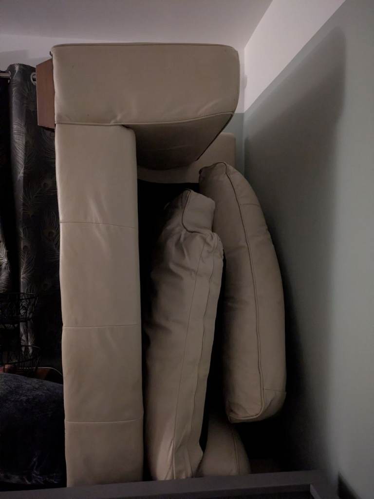 Cream leather 3 seater sofa. Some scratches to seat cushions but otherwise good condition. Has been stored upright in my living room for a few months for a relative who now no longer wants it. Needs gone asap, daughter is desperate to put up a