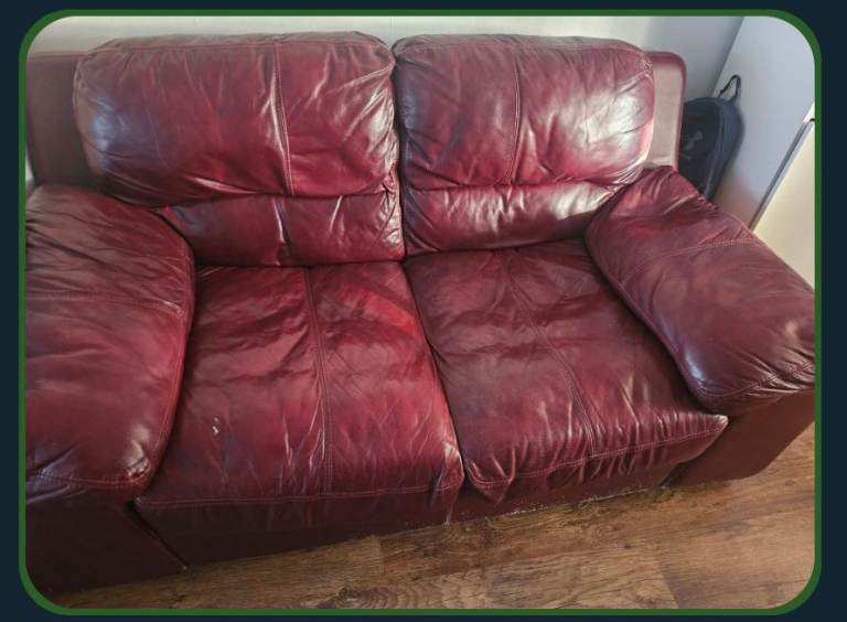 Red leather sofa 2 seater used Collection only rm8 essex thx