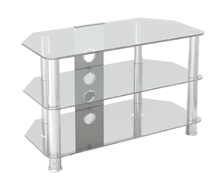 Silver and glass tv stand . Will take up to a 42 inch tv . Must collect.
