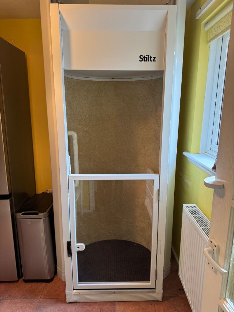 Item: Stiltz Duo Classic home lift / domestic elevator Condition: Excellent ✅ Key Details / Specifications (as per manufacturer) • Capacity: 170 kg (≈ 27 stone / 375 lb) — safely carries up to two people (or one person sitting). • Travel: