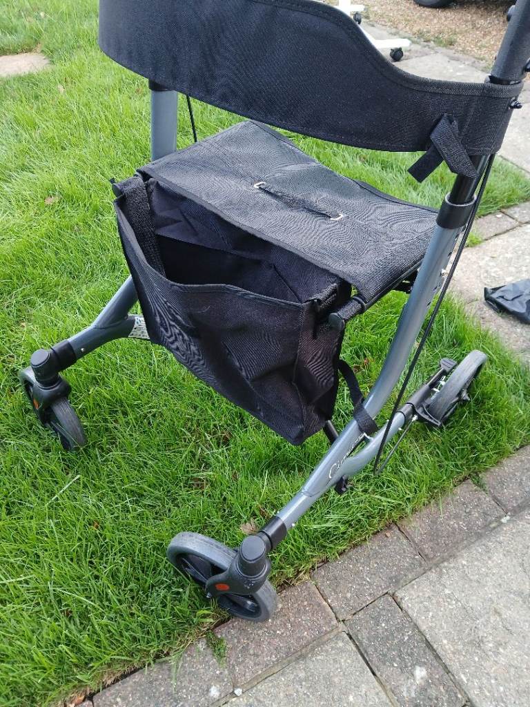 Lightweight walker with seat. Used, like new, only ever used indoors, less than 6 months old. Manual included. Key features: Adjustable height Upgraded shock absorbers 360 wheel rotation Handlebar breaks Seat Cup holder Can be folded flat f