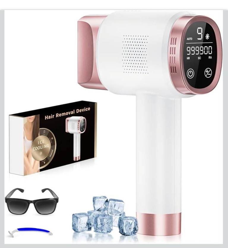 21J IPL Hair Removal Device with Ice Cooling System, Laser Hair Removal Device with 3 Functions, 9 Energy Levels, IPL Laser Hair Remover for Women Men, Facial Arm Bikini Line Leg Full Body, Rose Gold
