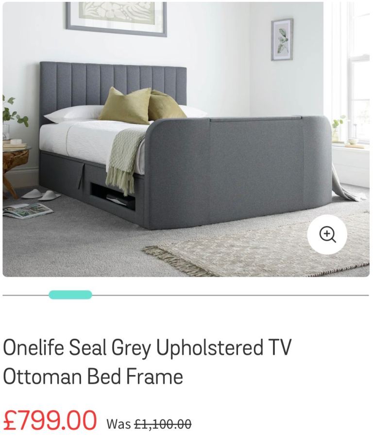 Onelife Seal Grey Upholstered TV Ottoman King Size Bed Frame