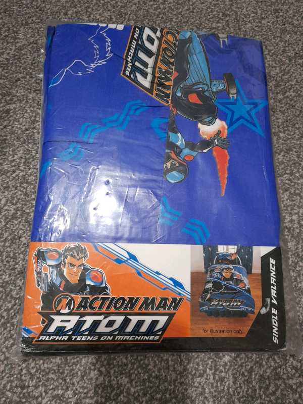 1 x Valance Bed sheet with 'Action Man' Design. BRAND NEW AND STILL IN ORIGINAL SEALED PACKAGING! Selling for £5.00 Free delivery may be an option depending on area. Thanks for looking 😊