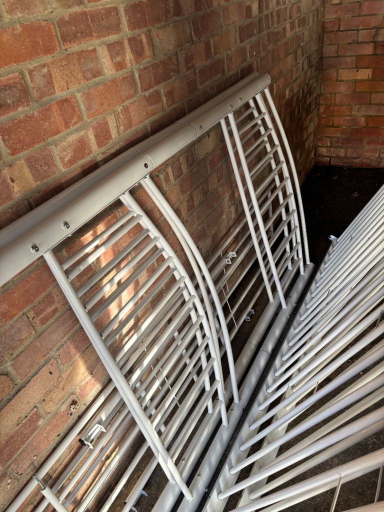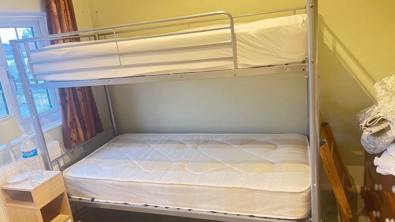 Silver bed can fit small sofa or desk underneath, sofa that fits also available. Please ask. Taken down ready to go, screws and instructions included.