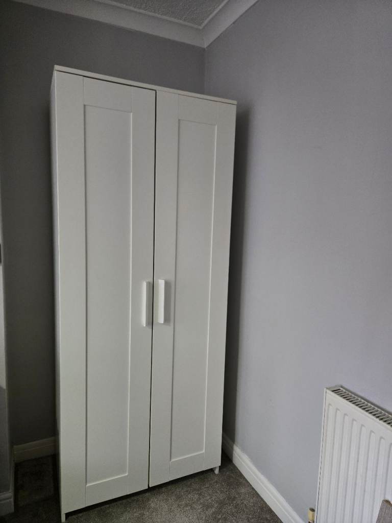 Brimnes white IKEA wardrobe. Excellent condition, not had that long. Current price in store £149. Easy to assemble and fits really well in alcoves. Flat packed. Pick-up only. 78x190cm. Would consider reasonable offers.