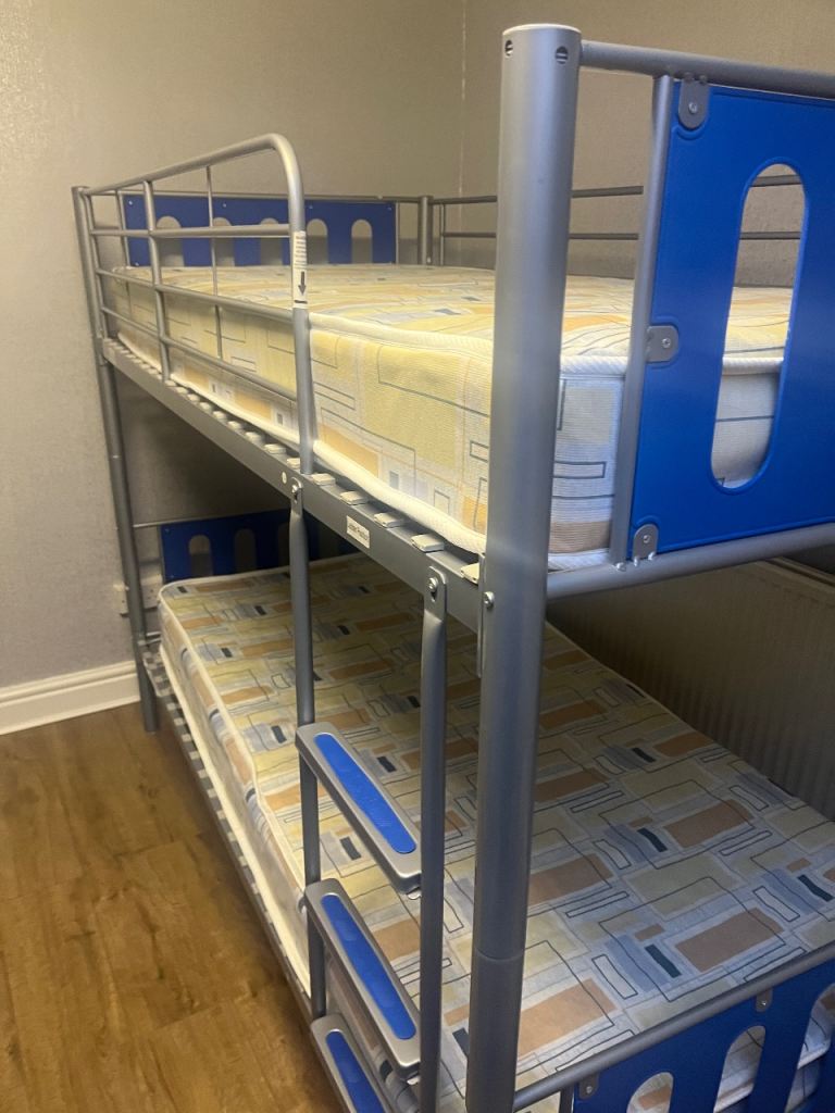 A set of steel bunk beds, great for a kids room. The frame is solid and in good working order, some minor wear and tear as expected. Ideal for saving space in smaller rooms. Ready for a new home.
