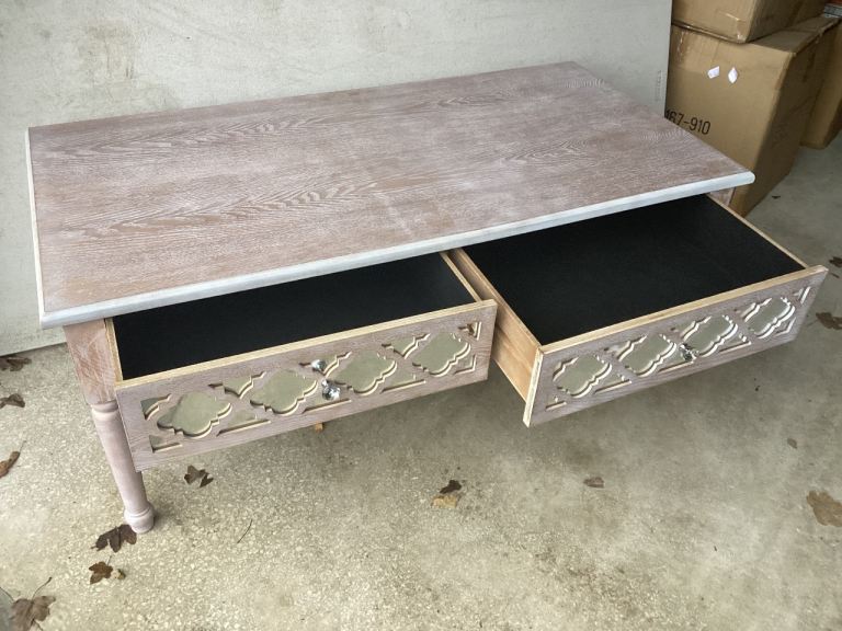 Two Drawer Lattice Mirrored Coffee Table Measures 120cm x 60cm x 50cm (No Damage) Reduced Low Price.. Collect Nottingham NG4