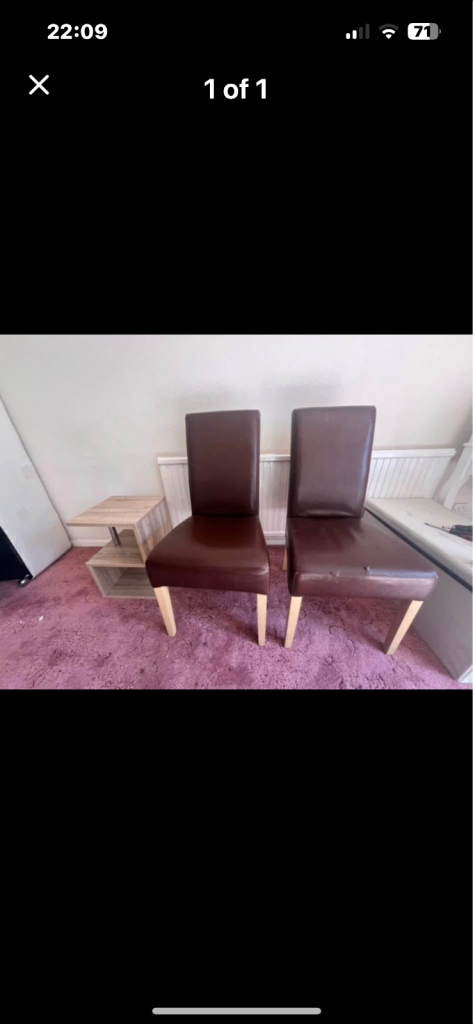 2 faux brown dining chairs