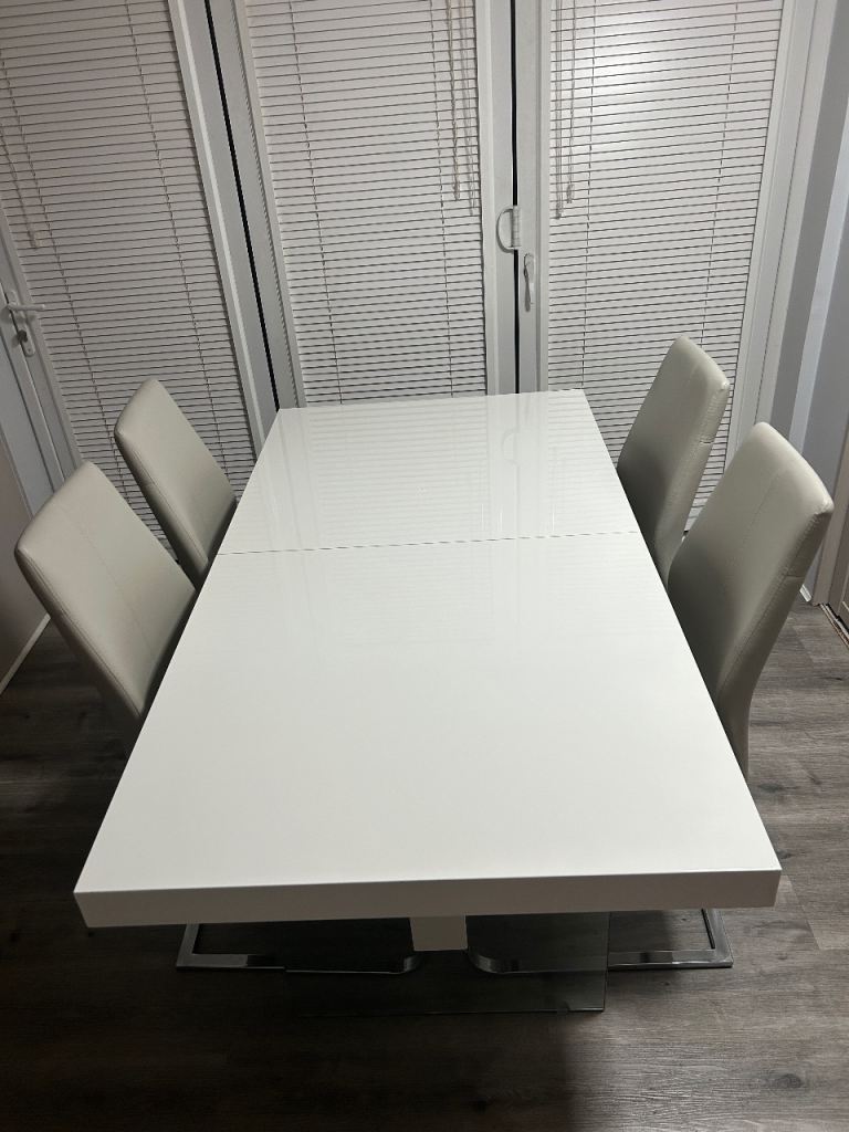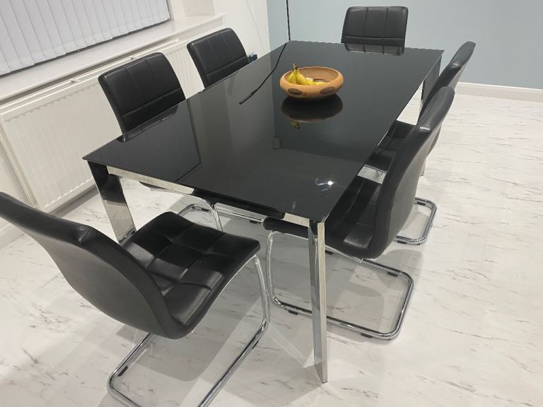 Glass table extendable from 160 cm to 260 cm. ( 6 seater to 10 seater ) Table cost £1179 alone from John Lewis plus 6 chairs. A bargain for quick sale