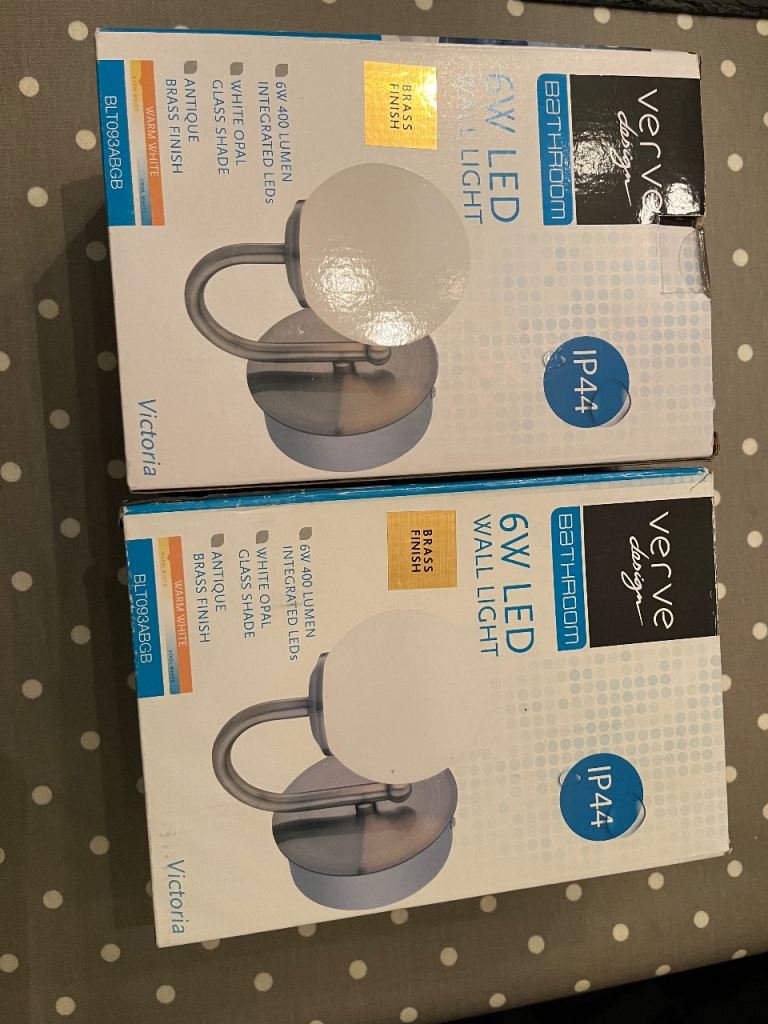 Brand new unused condition as bought prior to bathroom refurb and decided against having wall lights installed. Subtle brushed brass condition.
