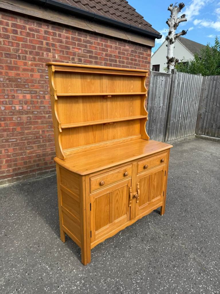 1980’s Ercol Mural Integral display cabinet . Golden dawn. Two shelves on top section. With glass display doors. Bottom section , two drawers and storage cupboards. Two pieces. No marks , no damage. Excellent condition and such a bargain. Thi