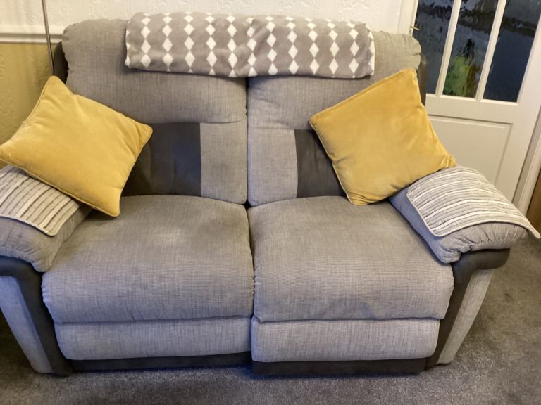 2 2 seater electric recliners .grey with leather trim.excellent condition.144cm x87cm.from pet free and smoke free home. £250 each or both £450. Buyer to collect.