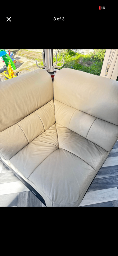 Leather corner part from sofa. Corner part doesn’t fit in new livingroom. Light grey in colour No imperfections Free to anyone who could use it. Must be uplifted G23