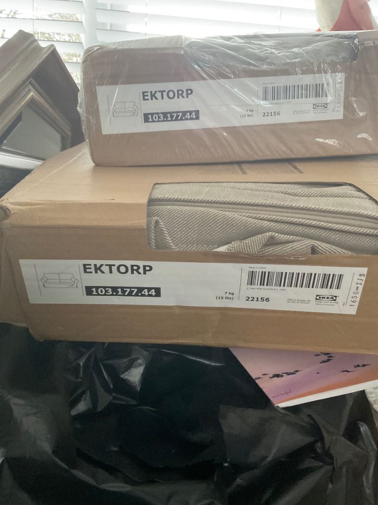 Large Next Sofa Very good condition - Splits in two for transporting Soft brushed feeling material dark brown. Still has tags attached
