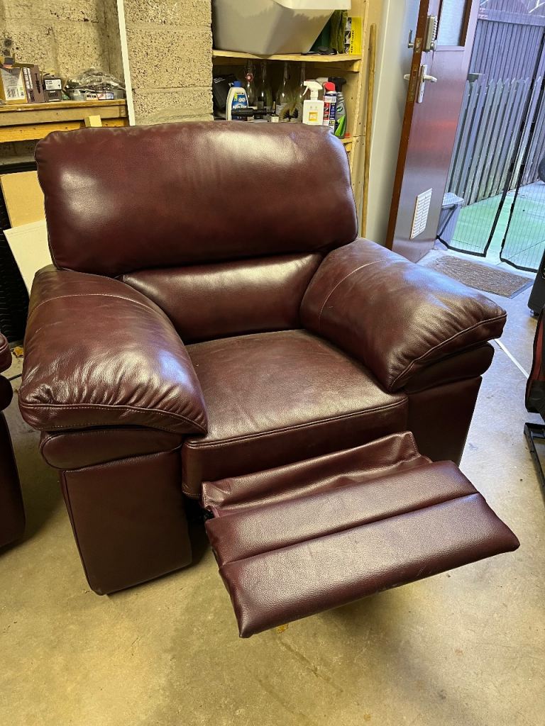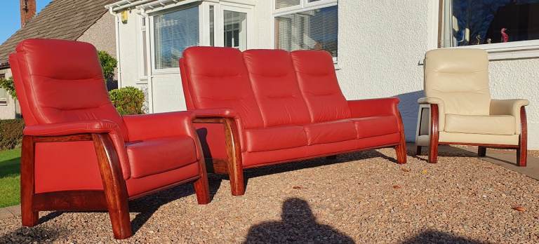Good as new three piece suite, Been stored for about 8 months, was only used by an elderly lady,purchased from a local high end store and cost in the region of £4500 new. Fully electric recliner in both single seats and both ends of the sofa.