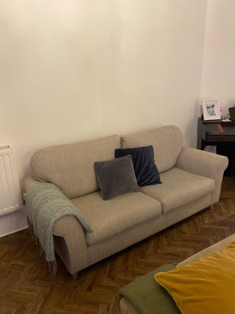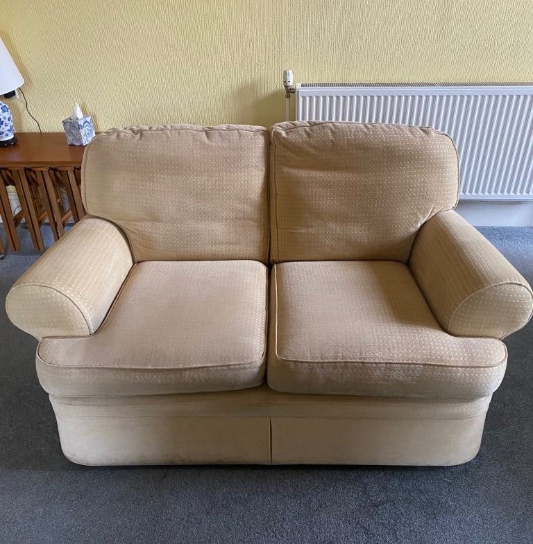 Solid M&S suite with Fire labels 2 seater and 3 seater sofas plus Footstool/additional seat with hidden single bed. Still plenty of life as well looked after and built to last. Ideal for rental ? Will need cleaned Buyer to uplift from EH14