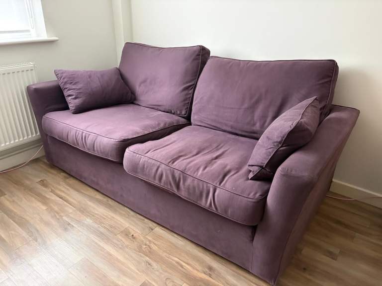 Sofa Workshop sofa. 214cm wide, 101cm deep, 91 cm high. Seat depth 66cm, seat height from ground 50 cm. Covers fully removable and washable. I would best describe the colour as aubergine.
