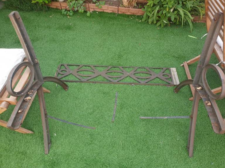 Great project, heavy cast iron ends & backrest panel, no wooden slats or screws/bolts included. Back panel has a crack in the cast iron but can be easily welded.