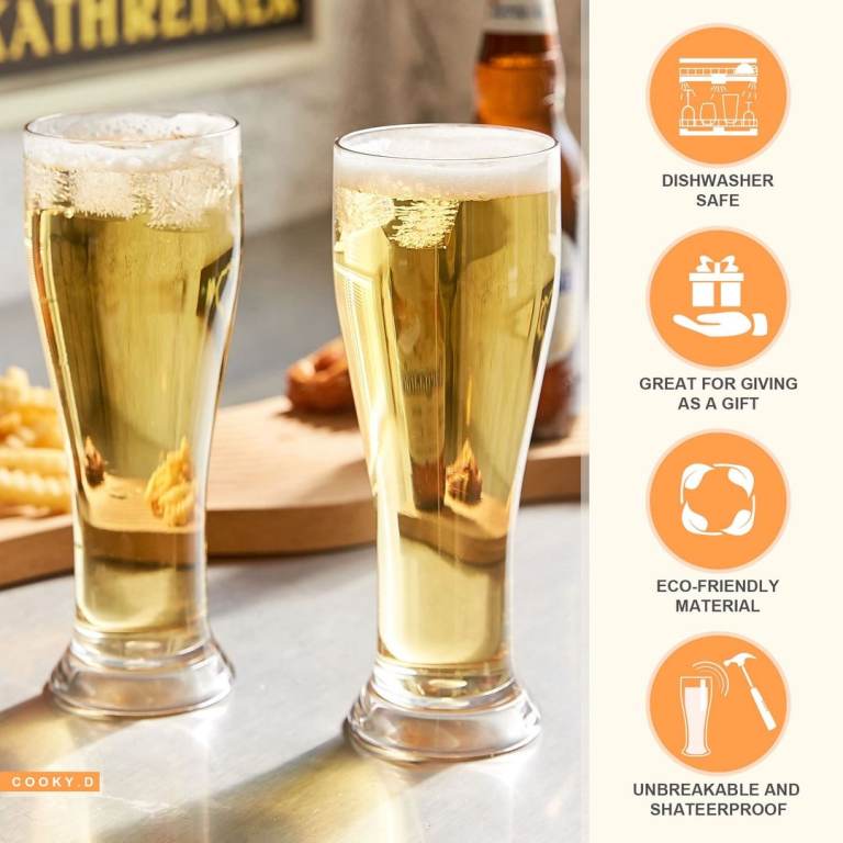 COOKY.D Beer Wheat Pint Glasses Unbreakable Tritan-Plastic Large Drinkware Sets Unique Gift for Party Perfect for Pools Camping Picnics Bpa Free Dishwasher Safe 480 ML/16.8 OZ, Set of 2