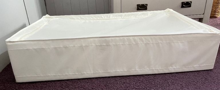 White storage unit Polyester material which is wipeable to keep clean Two units £4 each or two for £6 Solid sides and base Two way zip access From smoke free home Great for storing under beds for clothes/shoes etc Excellent condition Leng